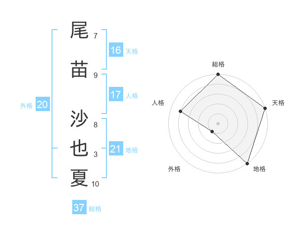 尾苗 沙也夏さんを姓名の画数から五運を鑑定