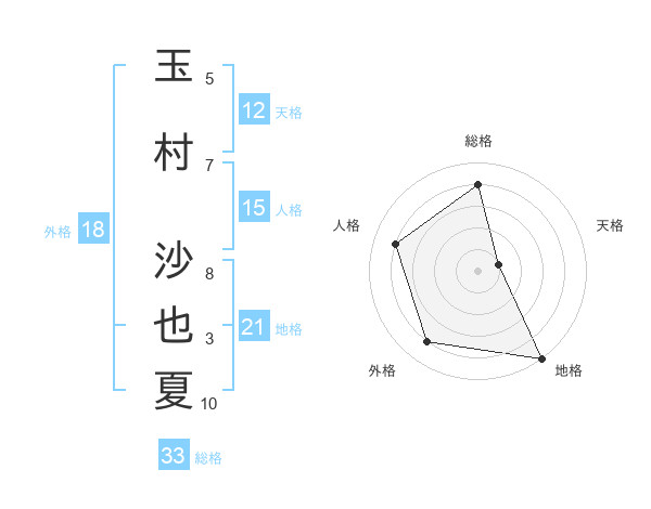 玉村 沙也夏さんを姓名の画数から五運を鑑定