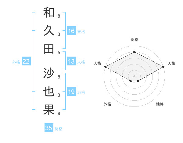 和久田 沙也果さんを姓名の画数から五運を鑑定