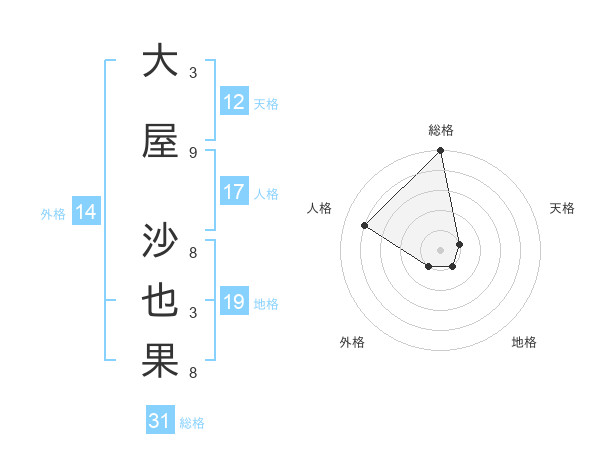 大屋 沙也果さんの総格は31画の5点!