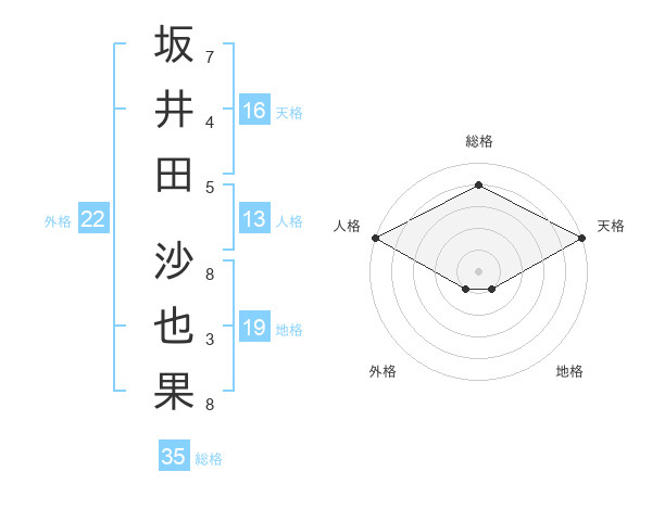 坂井田 沙也果さんを姓名の画数から五運を鑑定