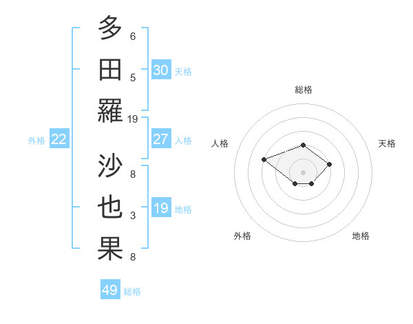多田羅 沙也果さんを姓名の画数から五運を鑑定