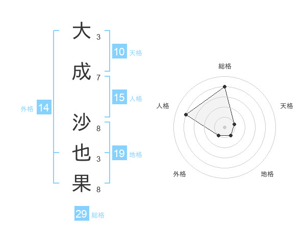 大成 沙也果さんを姓名の画数から五運を鑑定