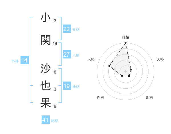 小関 沙也果さんの総格は41画の5点