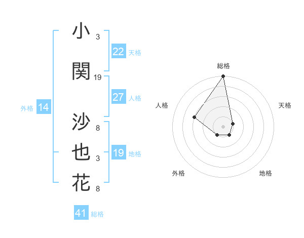 小関 沙也花さんを姓名の画数から五運を鑑定