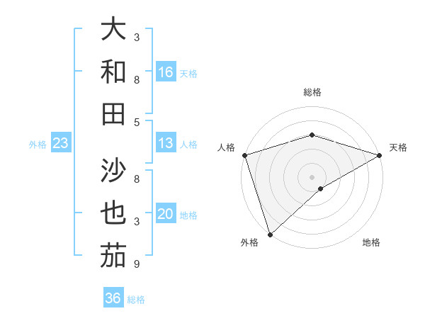 大和田 沙也茄さんの天格は16画の5点!