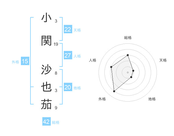 小関 沙也茄さんを姓名の画数から五運を鑑定