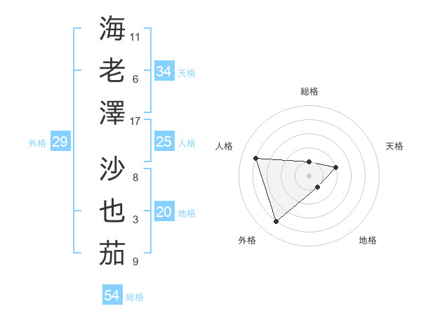 海老澤 沙也茄さんの総格は54画の1点!
