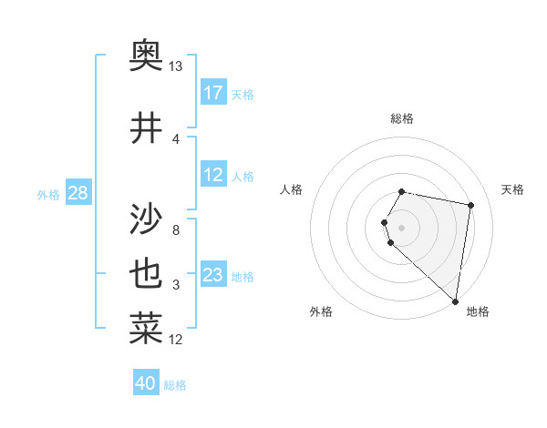 奥井 沙也菜さんの地格は23画の5点!
