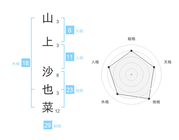 山上 沙也菜さんを姓名の画数から五運を鑑定