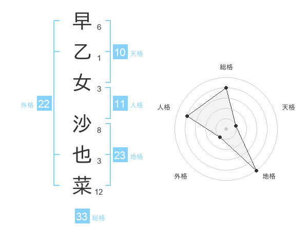 早乙女 沙也菜さんを姓名の画数から五運を鑑定