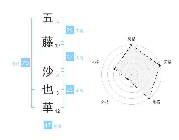 五藤 沙也華さんの総格は47画の5点!