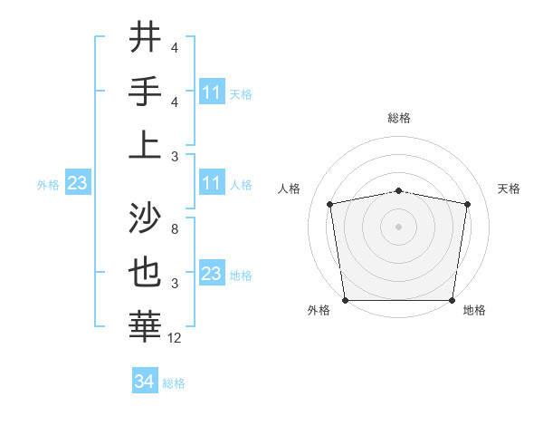 井手上 沙也華さんを姓名の画数から五運を鑑定