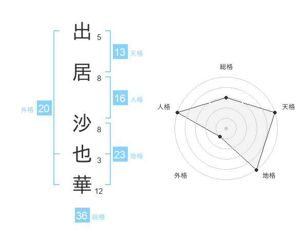 出居 沙也華さんを姓名の画数から五運を鑑定