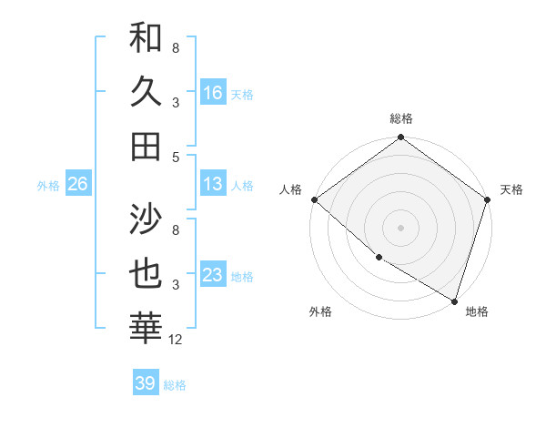 和久田 沙也華さんを姓名の画数から五運を鑑定