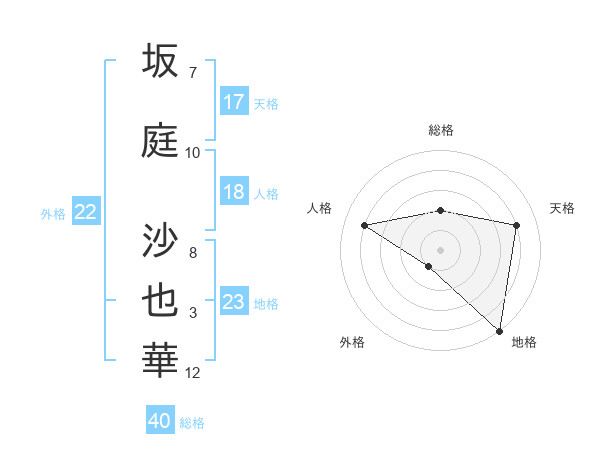 坂庭 沙也華さんの天格は17画の4点!