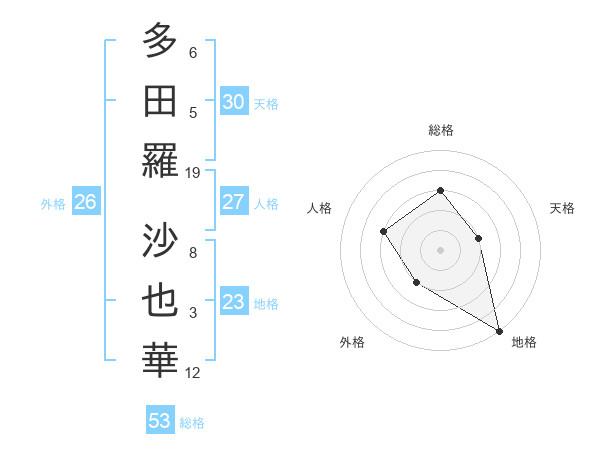 多田羅 沙也華さんの総格は53画の3点!