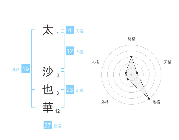 太 沙也華さんの総格は27画の3点!