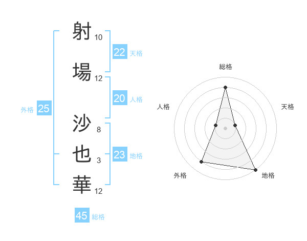 射場 沙也華さんの天格は22画の1点!