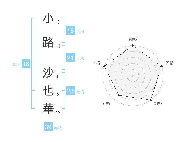 小路 沙也華さんを姓名の画数から五運を鑑定