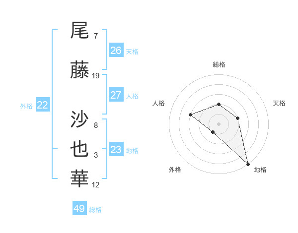 尾藤 沙也華さんの天格は26画の2点!