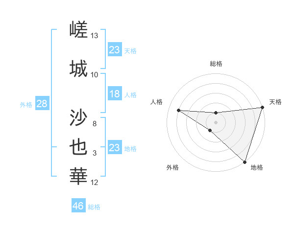 嵯城 沙也華さんを姓名の画数から五運を鑑定