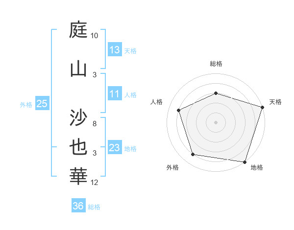 庭山 沙也華さんを姓名の画数から五運を鑑定