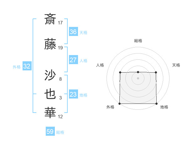 斎藤 沙也華さんの外格は32画の5点!