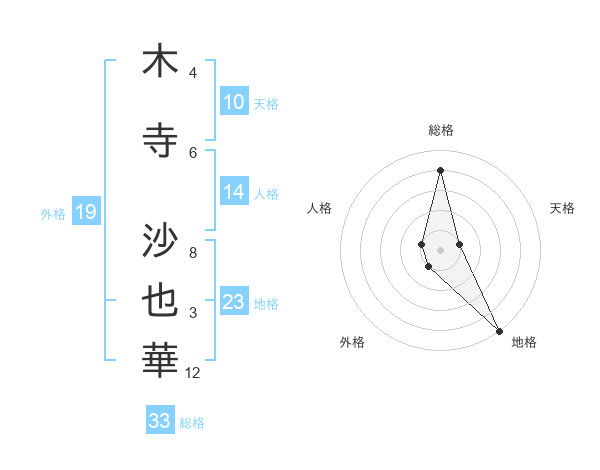 木寺 沙也華さんを姓名の画数から五運を鑑定
