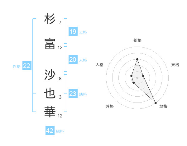 杉富 沙也華さんを姓名の画数から五運を鑑定