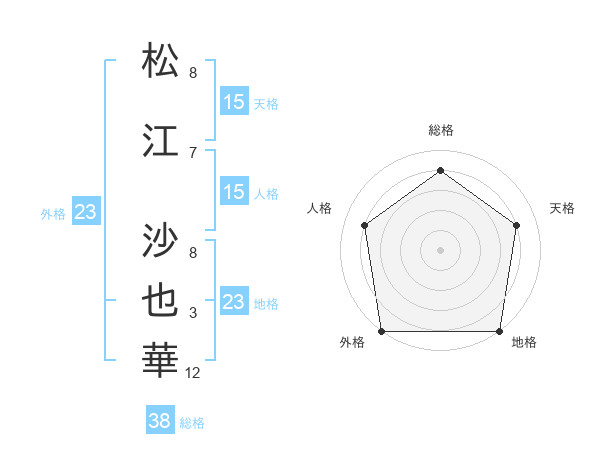 松江 沙也華さんの総格は38画の4点!