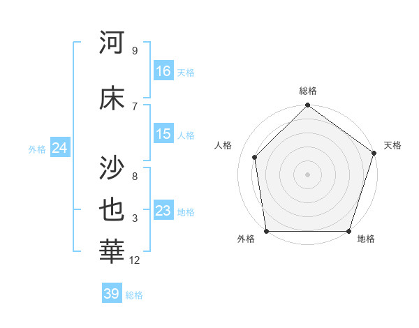 河床 沙也華さんを姓名の画数から五運を鑑定