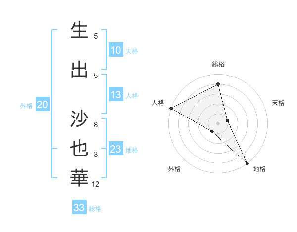 生出 沙也華さんの地格は23画の5点!