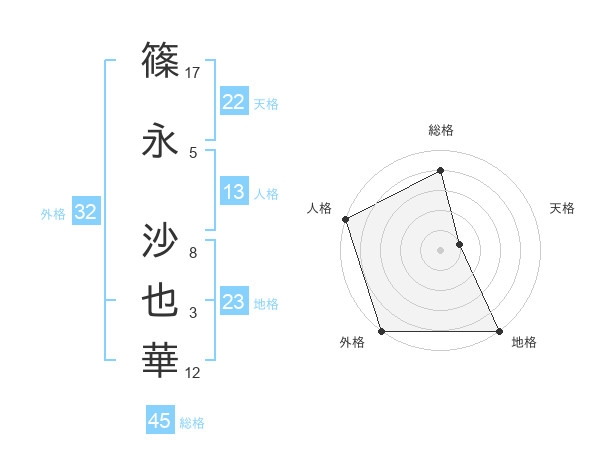 篠永 沙也華さんを姓名の画数から五運を鑑定