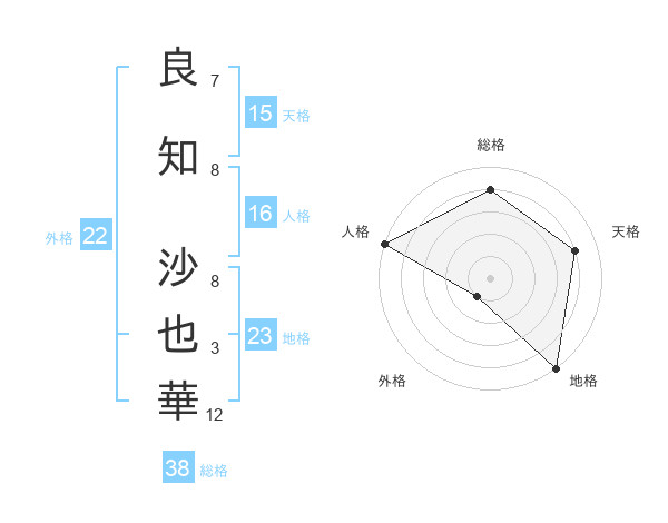良知 沙也華さんを姓名の画数から五運を鑑定
