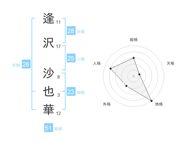 逢沢 沙也華さんを姓名の画数から五運を鑑定
