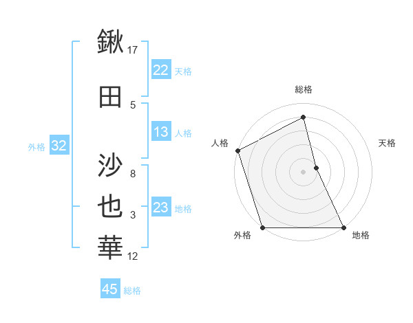 鍬田 沙也華さんの外格は32画の5点!