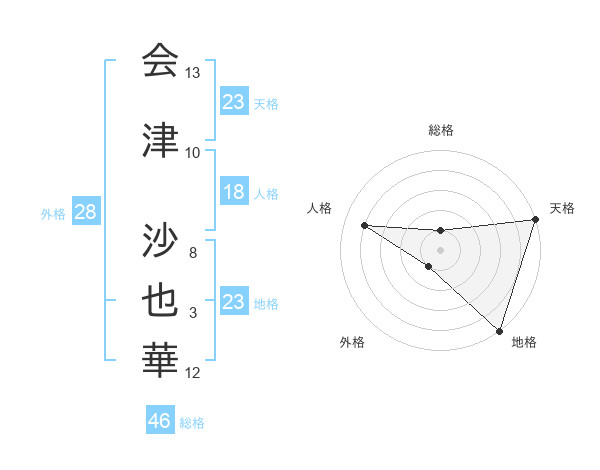 会津 沙也華さんの天格は23画の5点!