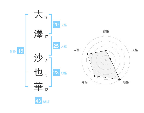 大澤 沙也華さんの天格は20画の1点!