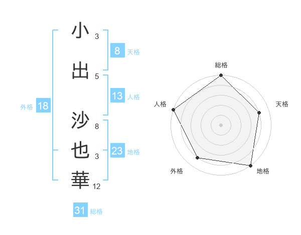 小出 沙也華さんを姓名の画数から五運を鑑定