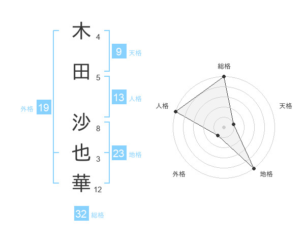 木田 沙也華さんを姓名の画数から五運を鑑定
