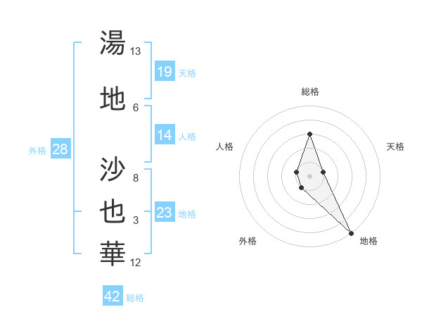 湯地 沙也華さんを姓名の画数から五運を鑑定