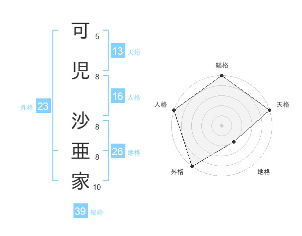 可児 沙亜家さんを姓名の画数から五運を鑑定
