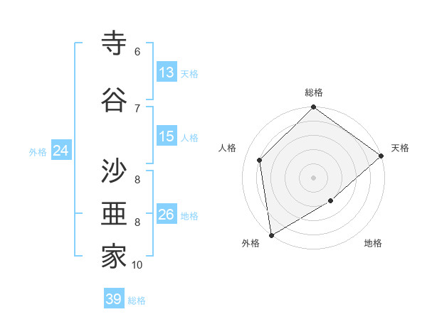 寺谷 沙亜家さんの総格は39画の5点!