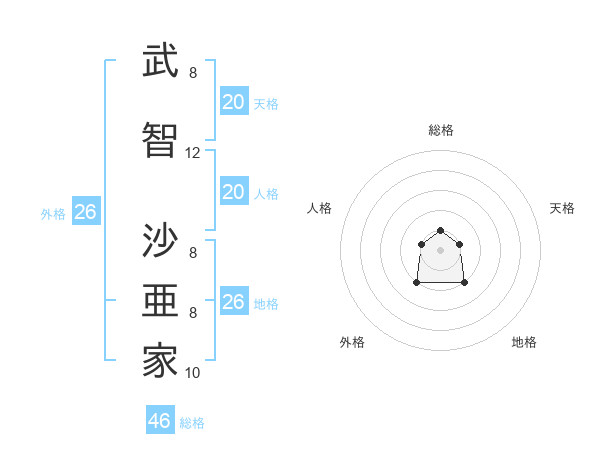 武智 沙亜家さんを姓名の画数から五運を鑑定