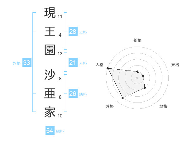 現王園 沙亜家さんを姓名の画数から五運を鑑定