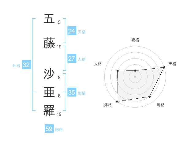 五藤 沙亜羅さんを姓名の画数から五運を鑑定