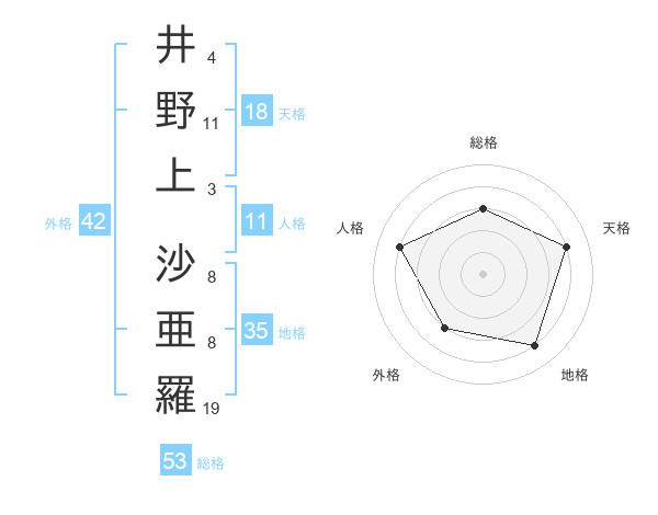 井野上 沙亜羅さんを姓名の画数から五運を鑑定