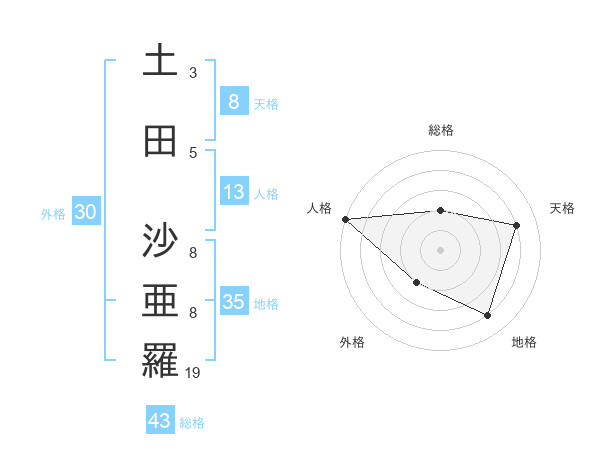 土田 沙亜羅さんを姓名の画数から五運を鑑定