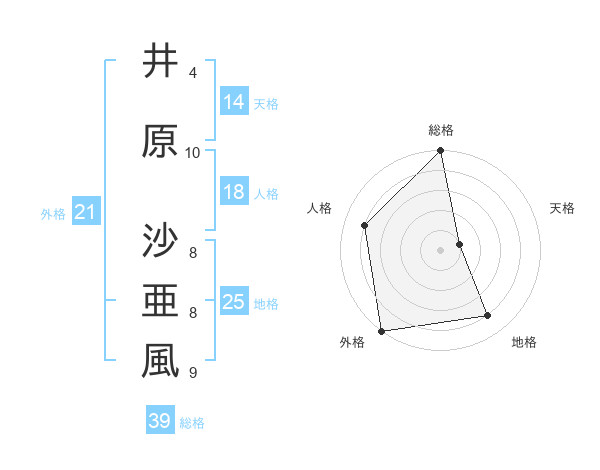 井原 沙亜風さんを姓名の画数から五運を鑑定